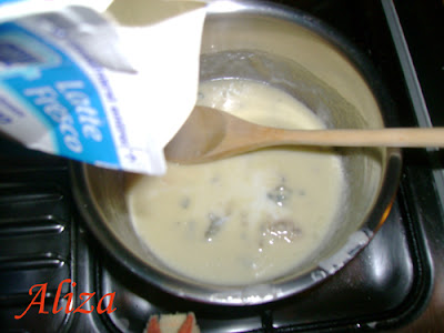 Se adauga lapte si se lasa sa fiarba la foc mic pentru vreo 5 minute