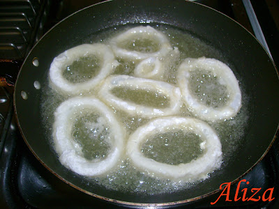 Se pun la prajit in ulei incins si se lasa pana devin aurii. Eu i-am uitat un pic mai mult