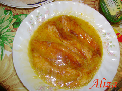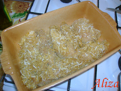 Prin ouale batute se da bucatile de pui.