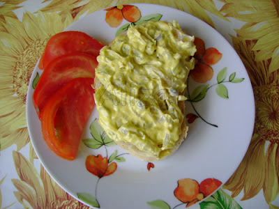 Si gata. Intinsa pe paine cu garnitura de rosii.