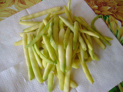 Mmmmm e o salata delicioasa me care mi-o facea mama mereu vara. Imi placea le nebunie. Si pentru ca mai avem in frigider vreo mana de fasole verde galbena, m-am gandit sa fac putina de pofta. Fasolea se curata de ate, daca e tanara nu prea are si se spala.